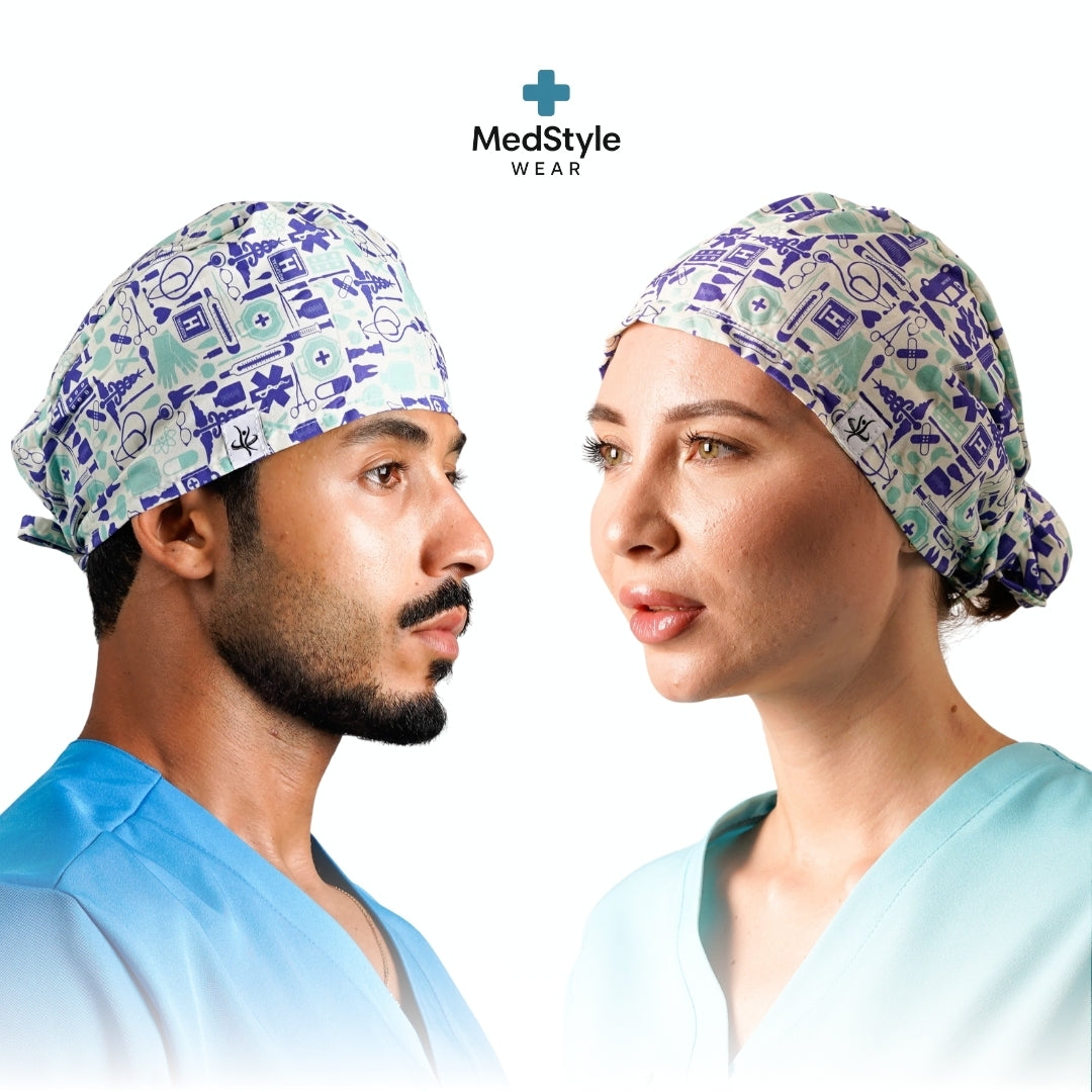 Gorro quirúrgico de alta calidad, diseñado para brindar comodidad durante largas jornadas de trabajo. Fabricado con tela ligera, transpirable y resistente, se ajusta perfectamente gracias a su elástico y cintas posteriores. Ideal para personal médico, odontológico, veterinario y cualquier entorno que requiera higiene y estilo. Lavable, reutilizable y disponible en una amplia variedad de estampados originales.