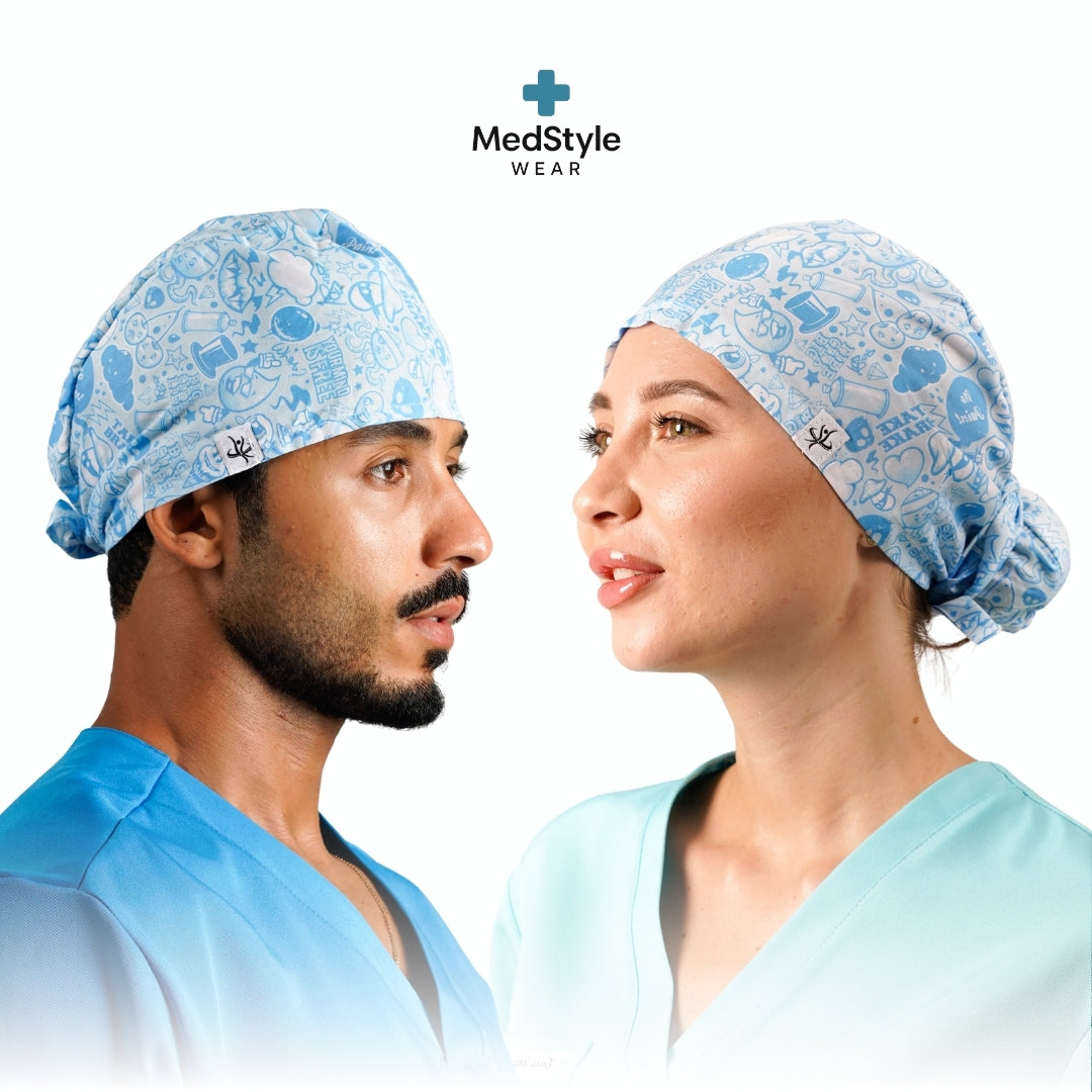 Gorro quirúrgico de alta calidad, diseñado para brindar comodidad durante largas jornadas de trabajo. Fabricado con tela ligera, transpirable y resistente, se ajusta perfectamente gracias a su elástico y cintas posteriores. Ideal para personal médico, odontológico, veterinario y cualquier entorno que requiera higiene y estilo. Lavable, reutilizable y disponible en una amplia variedad de estampados originales.