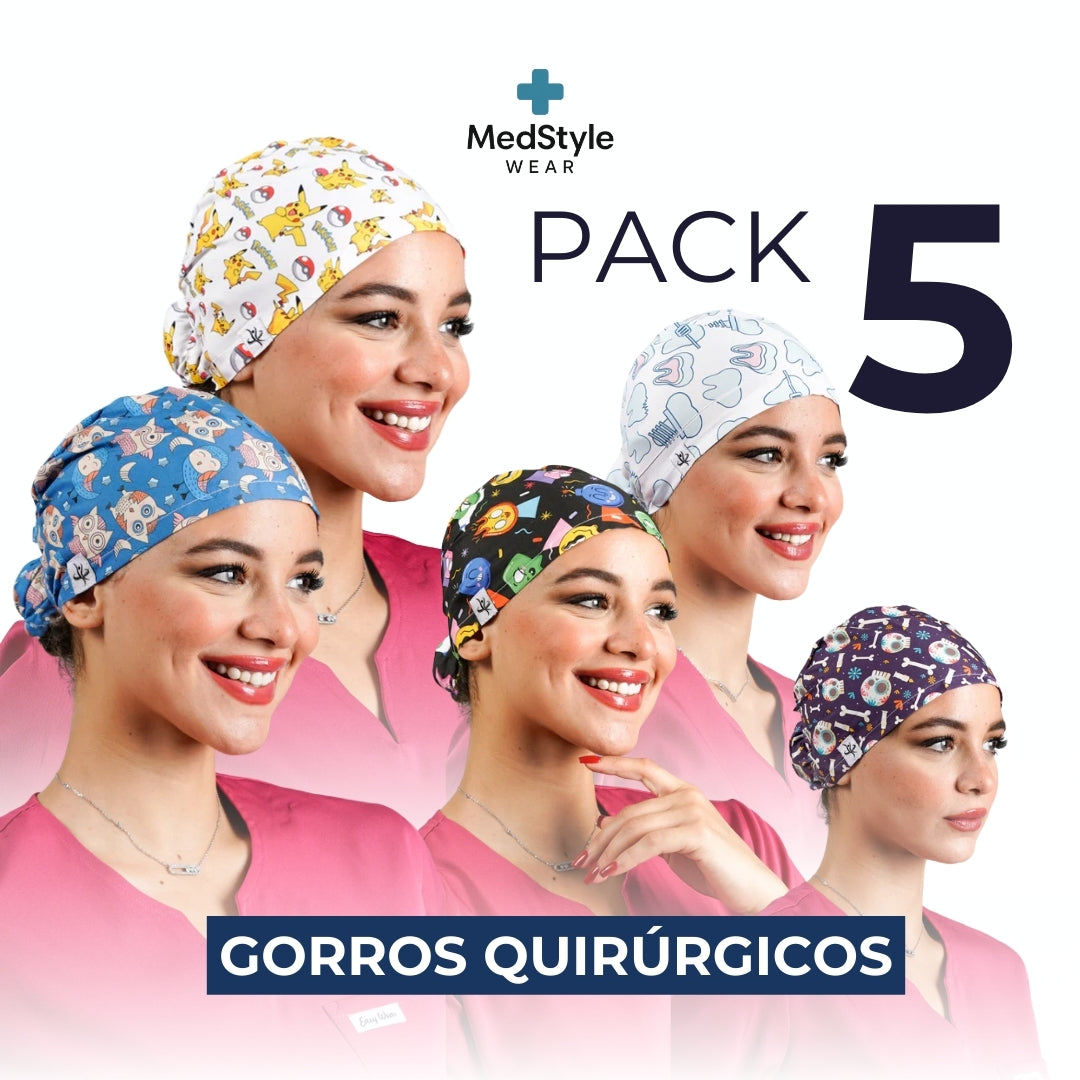Variedad y estilo en un solo pack. 5 gorras médicas con ajuste perfecto y máxima comodidad.