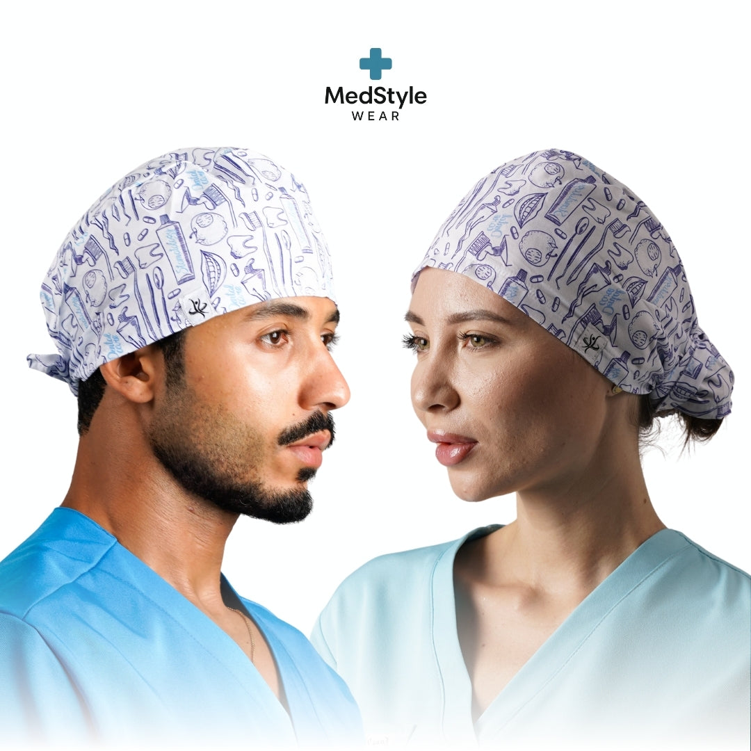 Gorro quirúrgico de alta calidad, diseñado para brindar comodidad durante largas jornadas de trabajo. Fabricado con tela ligera, transpirable y resistente, se ajusta perfectamente gracias a su elástico y cintas posteriores. Ideal para personal médico, odontológico, veterinario y cualquier entorno que requiera higiene y estilo. Lavable, reutilizable y disponible en una amplia variedad de estampados originales.