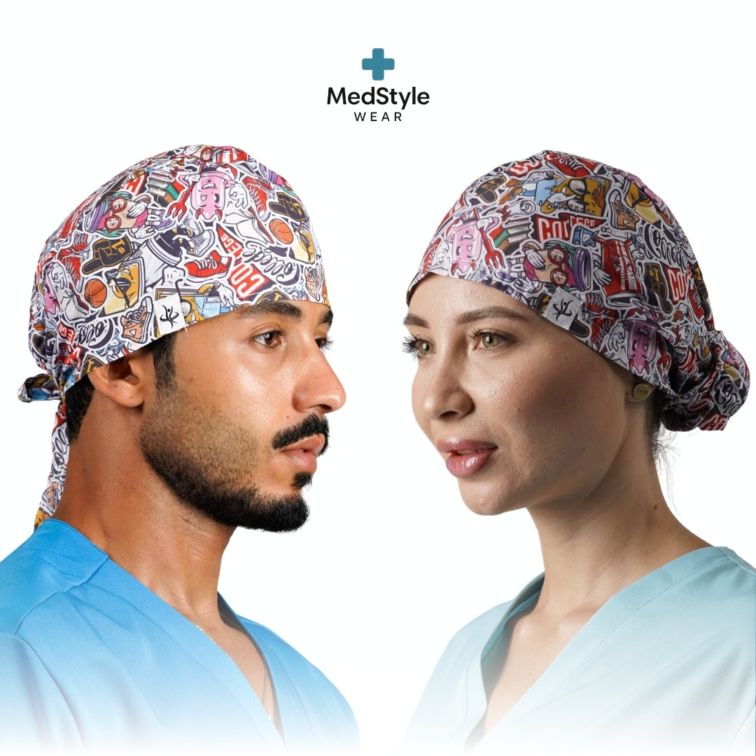 Gorro quirúrgico de alta calidad, diseñado para brindar comodidad durante largas jornadas de trabajo. Fabricado con tela ligera, transpirable y resistente, se ajusta perfectamente gracias a su elástico y cintas posteriores. Ideal para personal médico, odontológico, veterinario y cualquier entorno que requiera higiene y estilo. Lavable, reutilizable y disponible en una amplia variedad de estampados originales.
