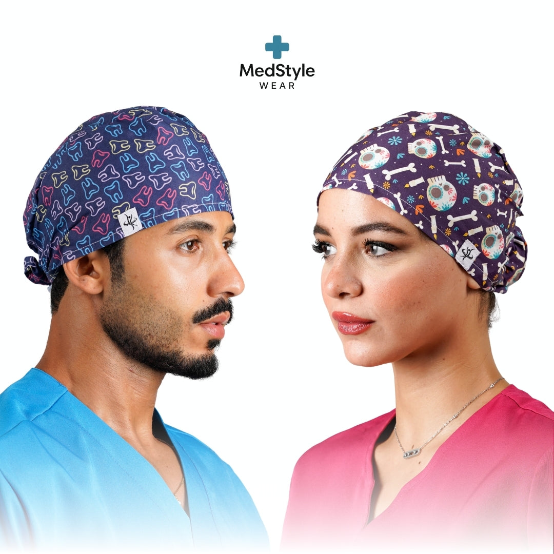 Gorro quirúrgico de alta calidad, diseñado para brindar comodidad durante largas jornadas de trabajo. Fabricado con tela ligera, transpirable y resistente, se ajusta perfectamente gracias a su elástico y cintas posteriores. Ideal para personal médico, odontológico, veterinario y cualquier entorno que requiera higiene y estilo. Lavable, reutilizable y disponible en una amplia variedad de estampados originales.