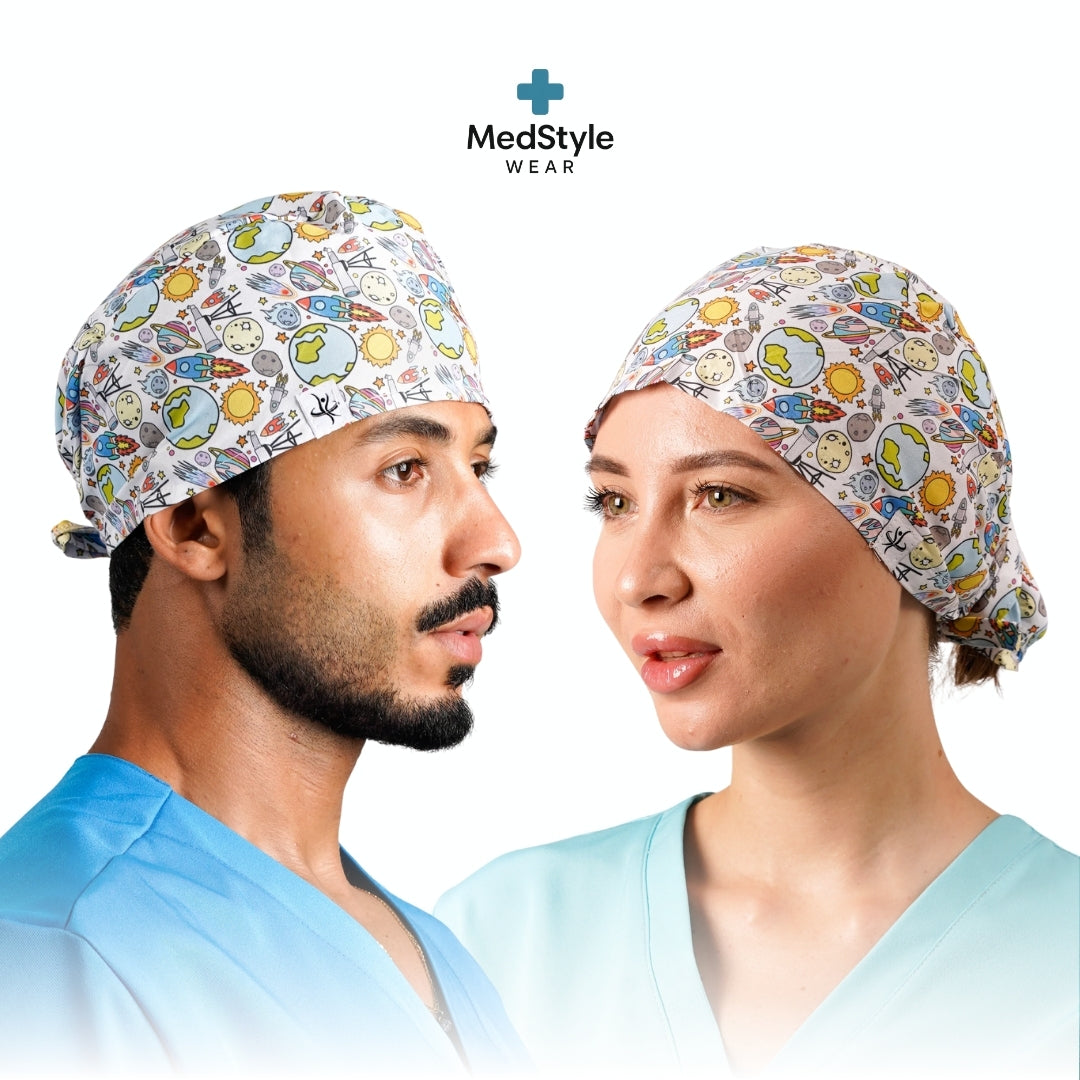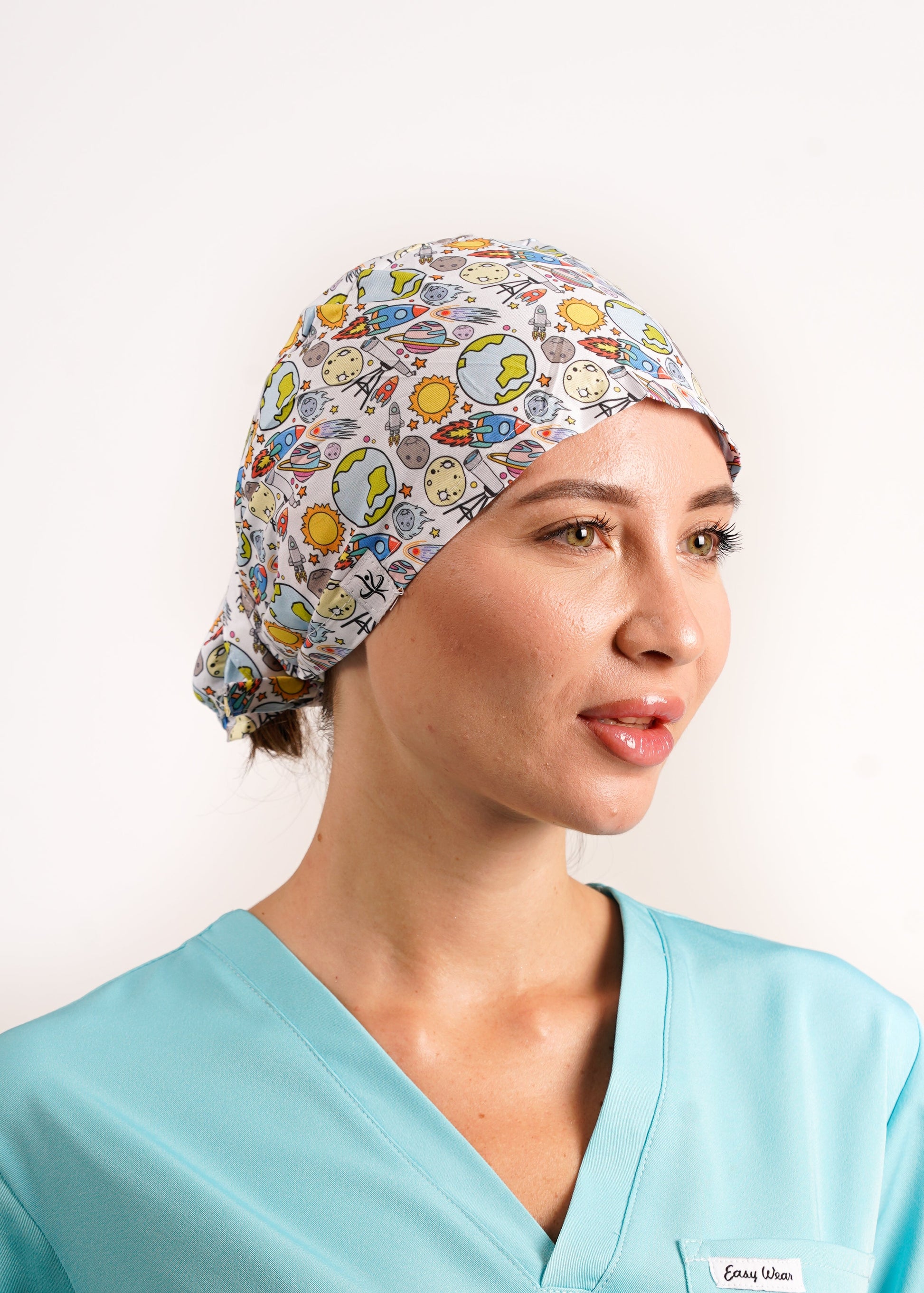 Gorro quirúrgico de alta calidad, diseñado para brindar comodidad durante largas jornadas de trabajo. Fabricado con tela ligera, transpirable y resistente, se ajusta perfectamente gracias a su elástico y cintas posteriores. Ideal para personal médico, odontológico, veterinario y cualquier entorno que requiera higiene y estilo. Lavable, reutilizable y disponible en una amplia variedad de estampados originales.